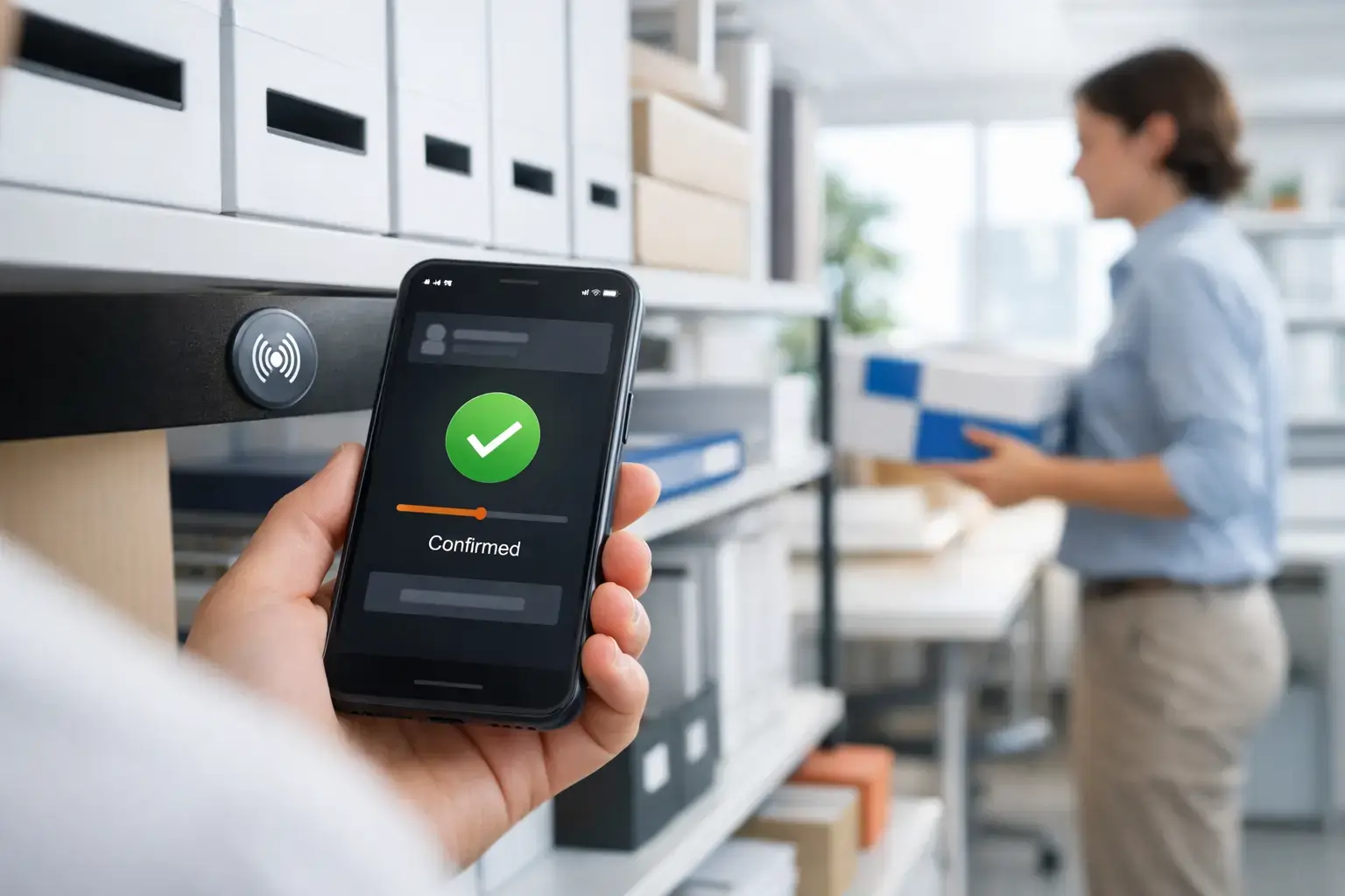 Scan the tag — the request goes to the server and the action runs automatically.