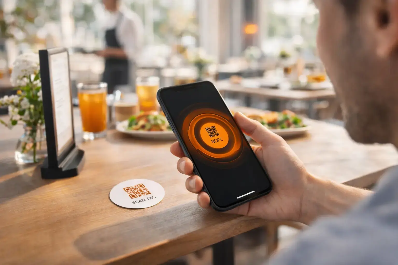 Customers interact with your business through simple tag scans — like ordering from a table menu.