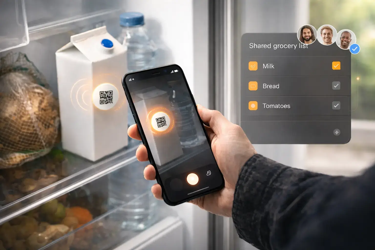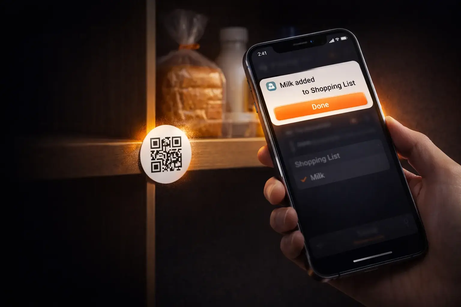 Yes — the tag itself contains only a unique code. Your phone opens the action, and the server performs it (for example, adding an item to a list or sending a Telegram message).