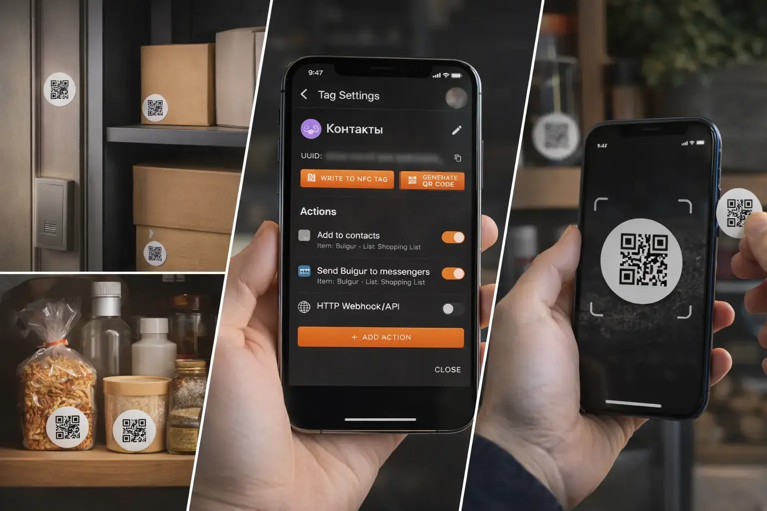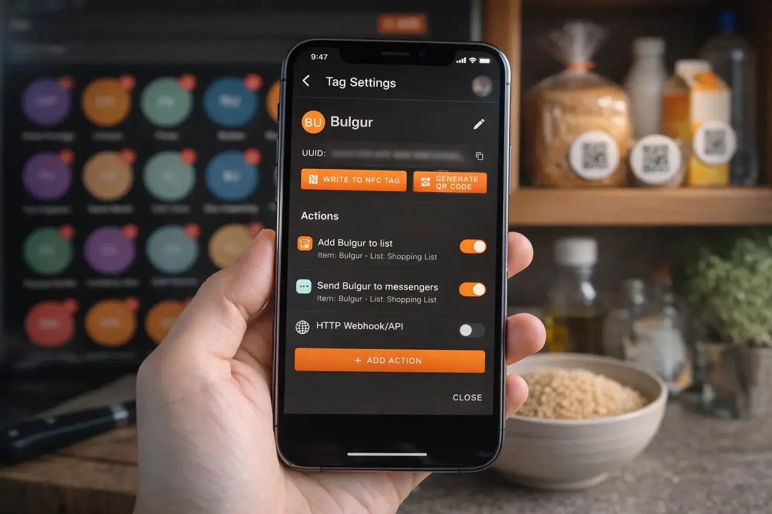 Create NFC or QR tags, link them to actions, and trigger workflows instantly — from personal usage to business processes.